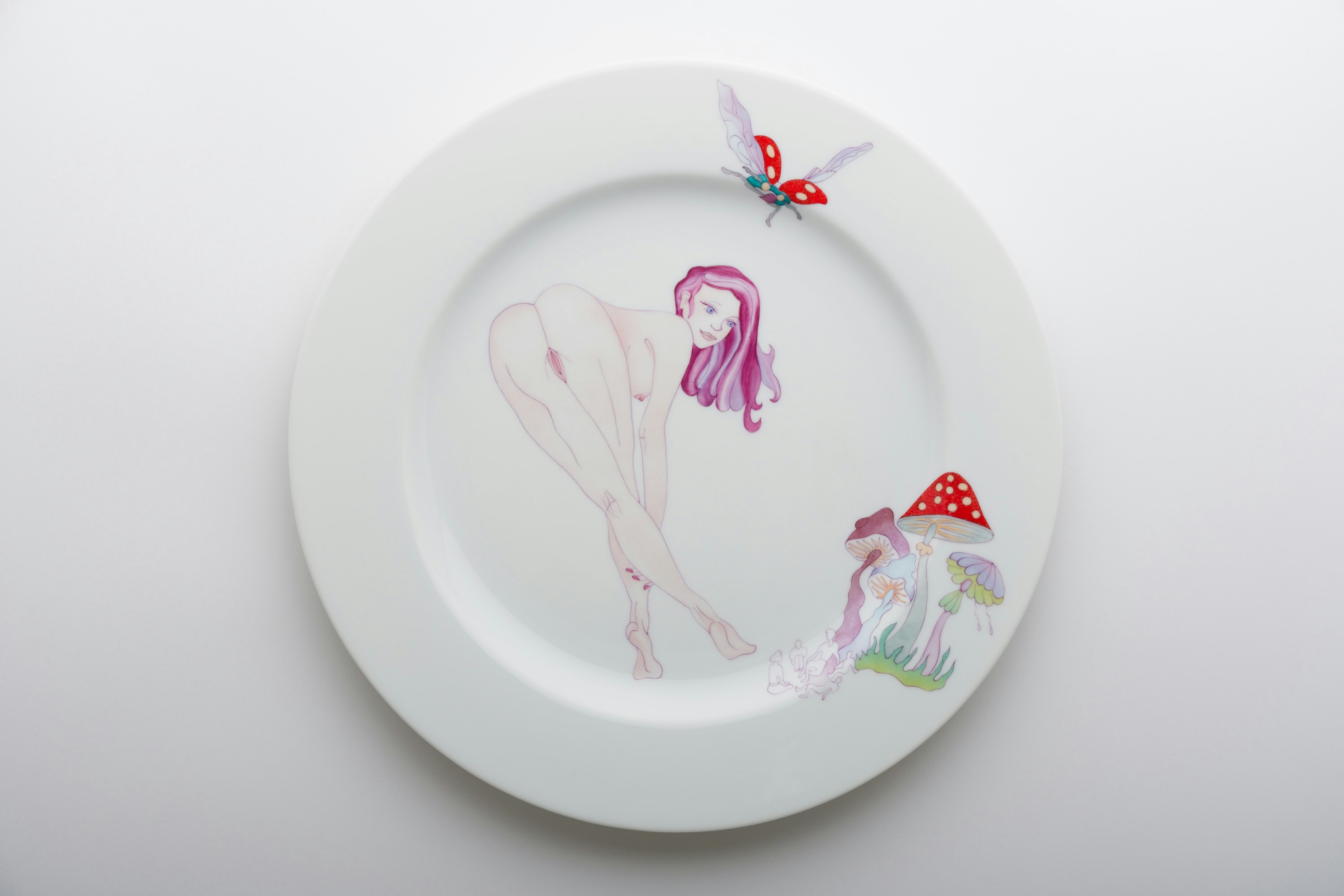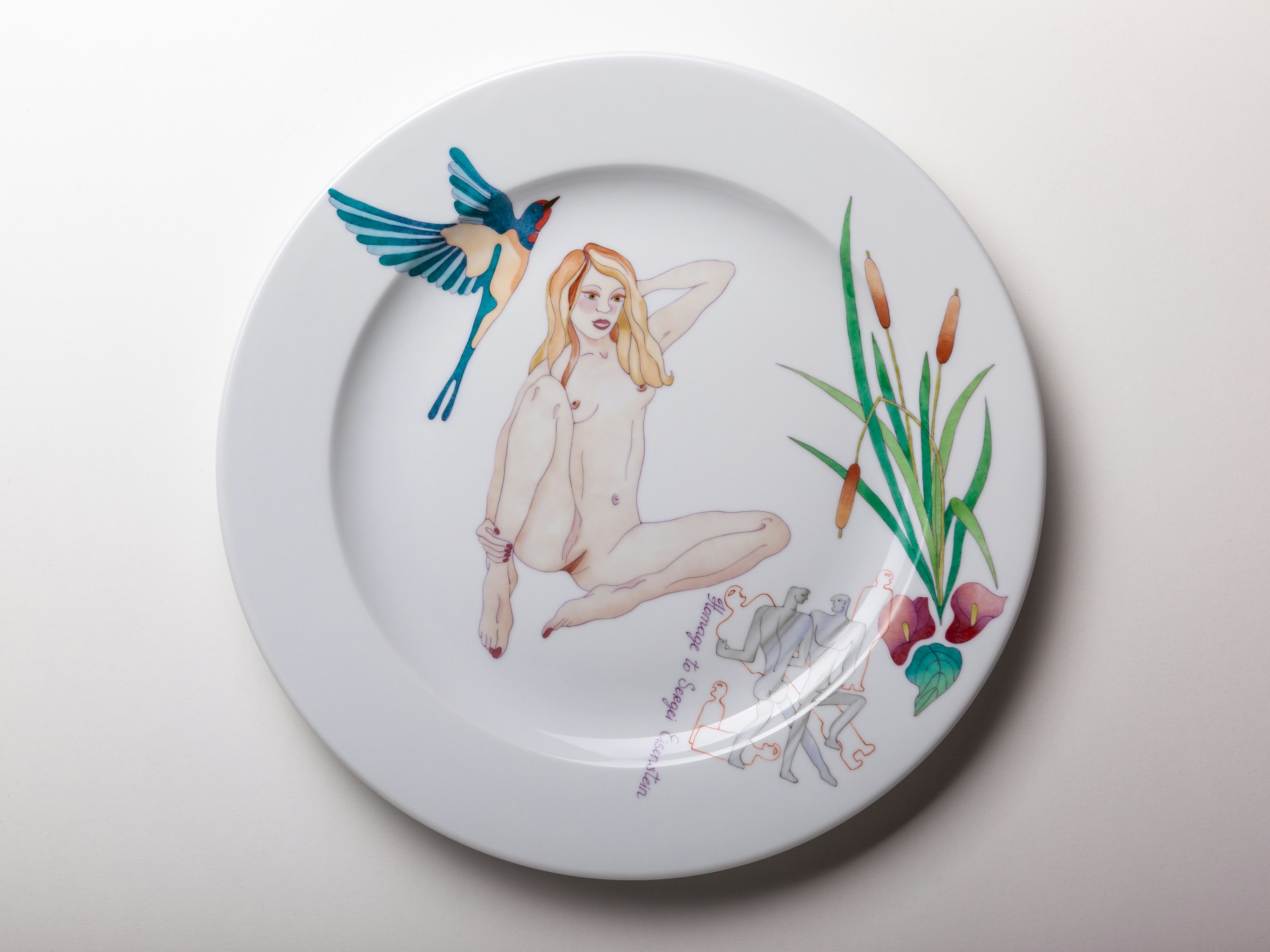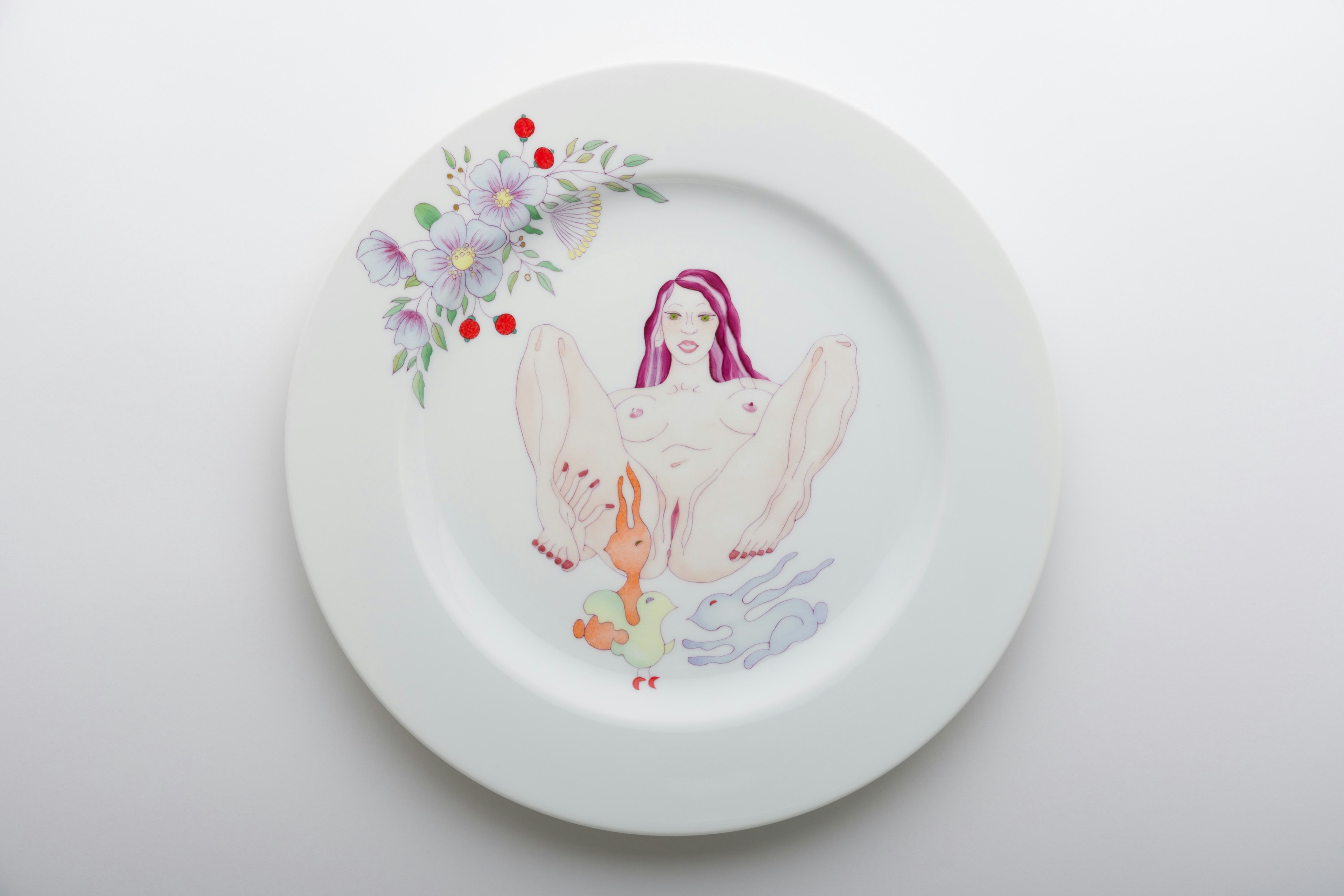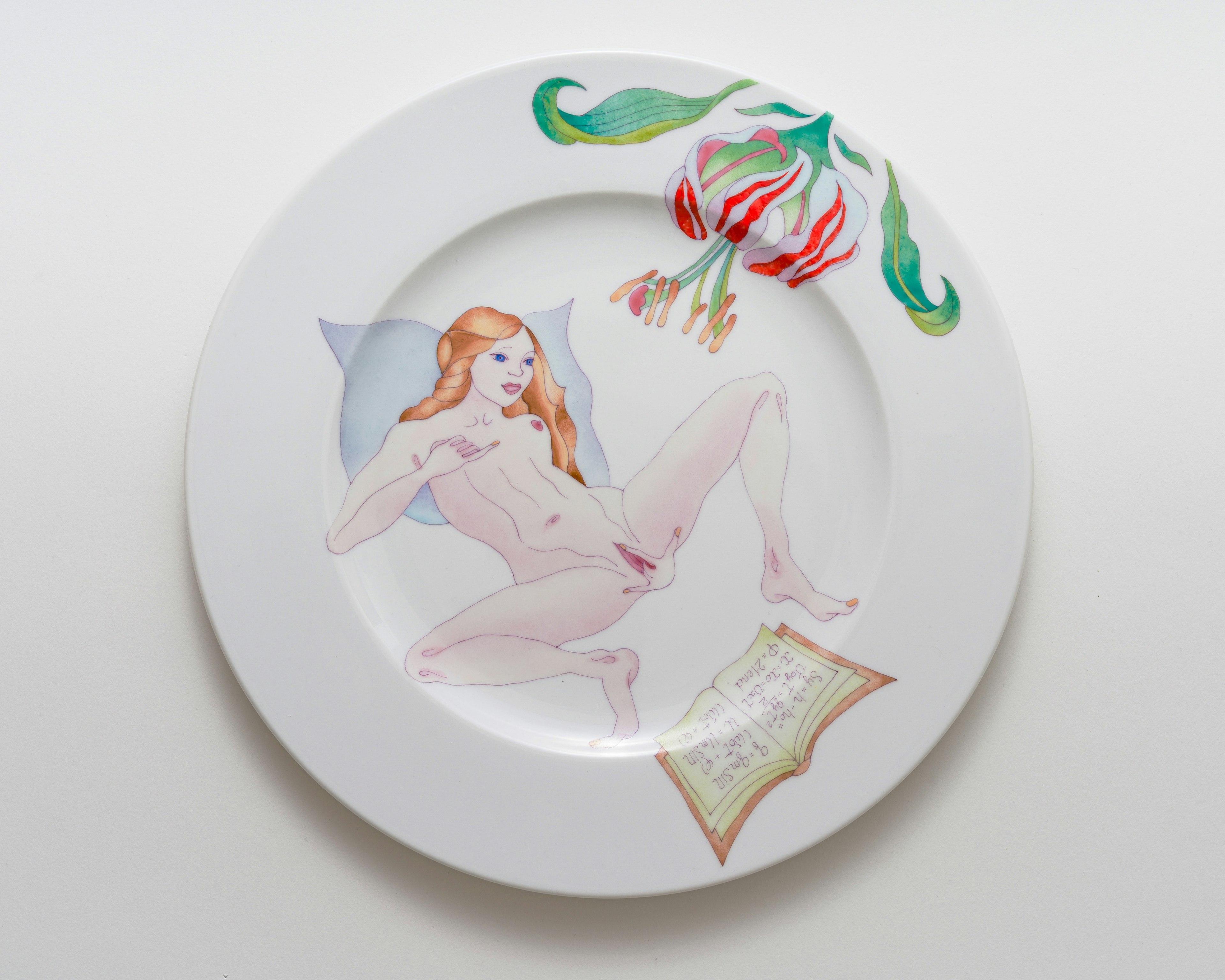 My set of “Society of clean plates” is my “This is not a pipe” peace of work. This is not me and not my body, this is not a body in general, but an image on porcelain. I made my set especially for dessert, because our sexuality is a dessert, it is a gift that makes our life much more pleasant and has a very important role not only in intimate life. It’s also a source of inspiration in art since the birth of humanity. Modern psychology constantly pays attention to the role of sexuality in personality development. If you deny your sexuality it will wake up a discomfort, frustrations and will lead to aggression. So, we have to express it and art is this safe zone, were we can blow it up or refine it, work it out and show it to the world. It’s always been this way, and I hoop its stays this way.