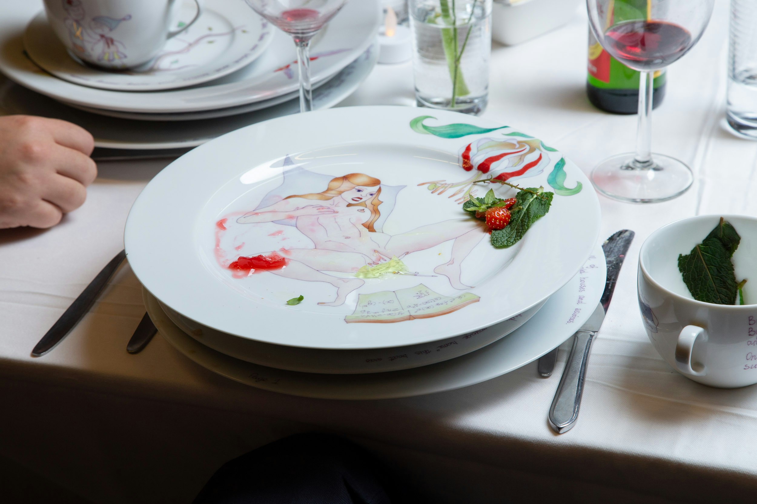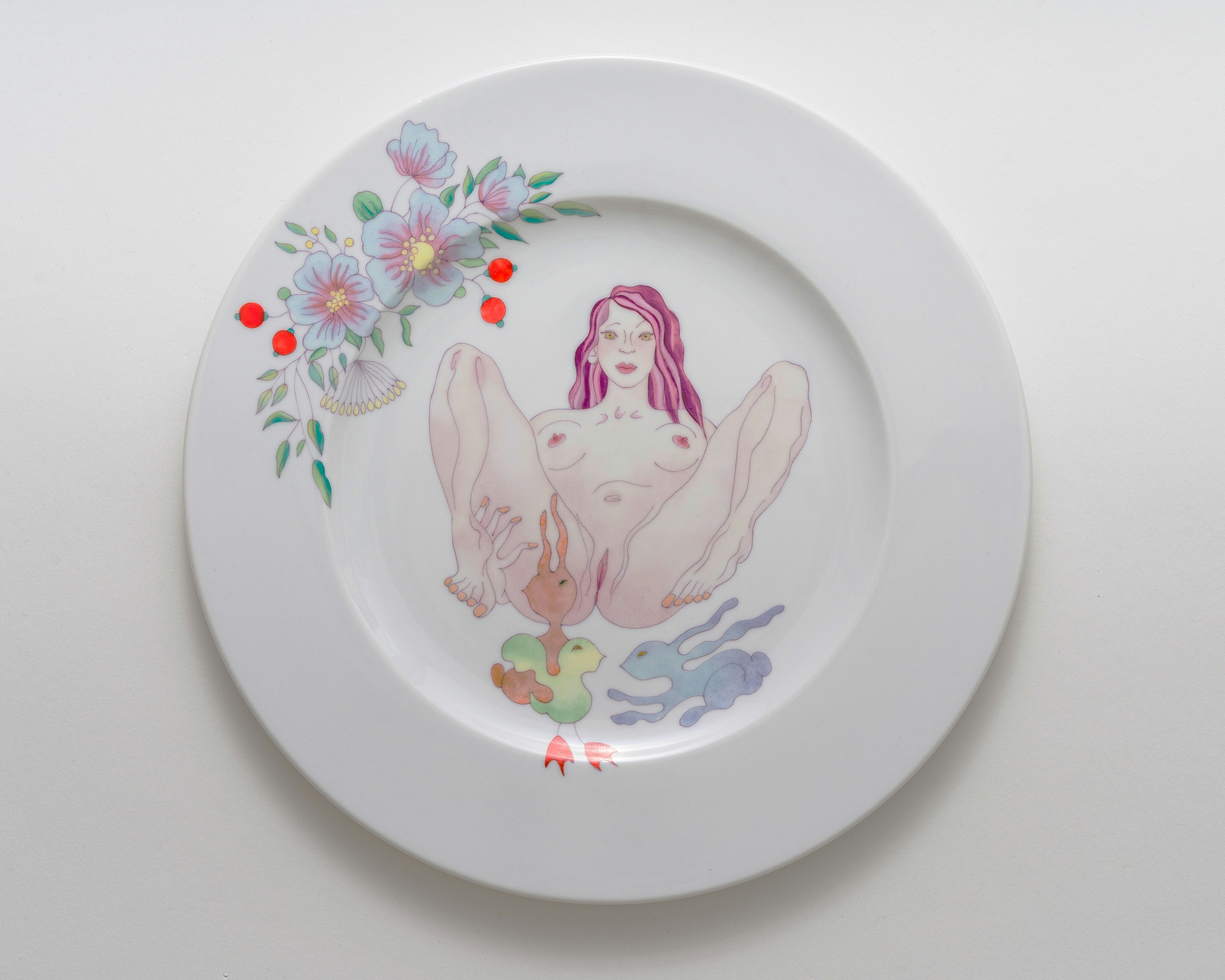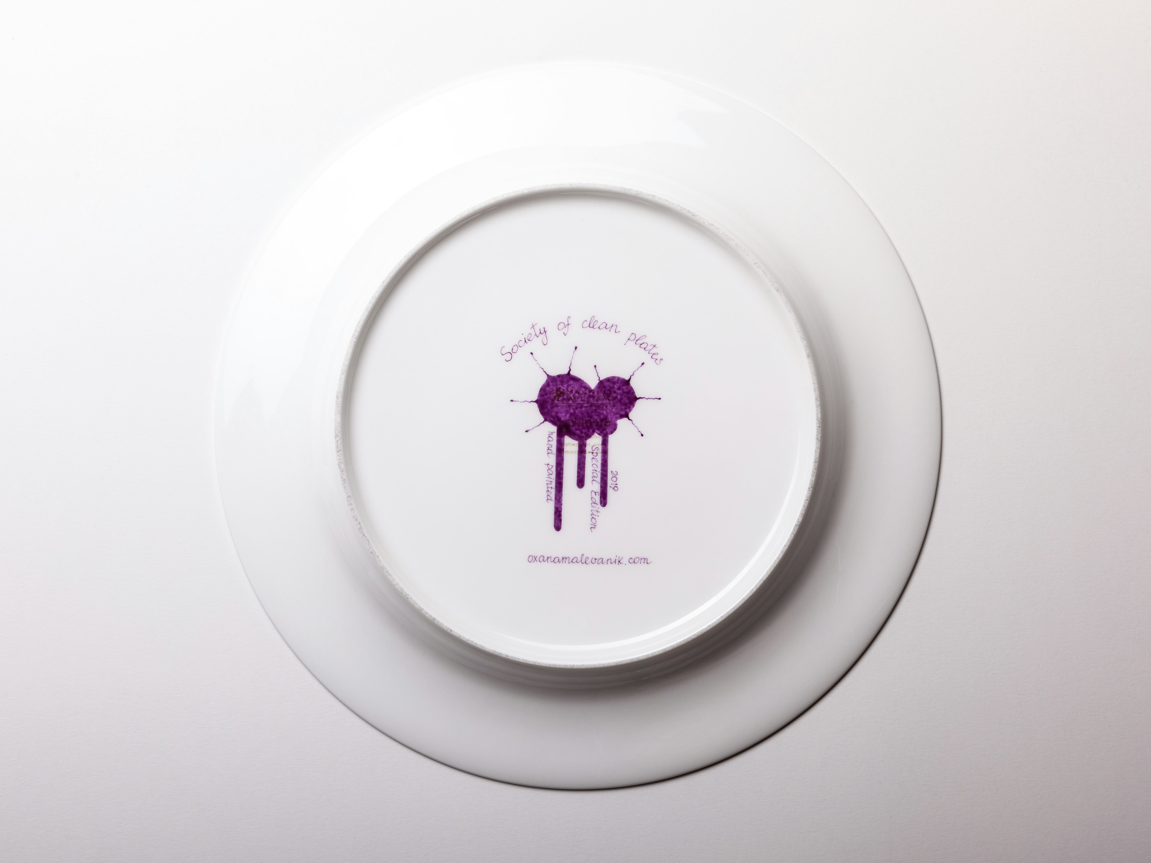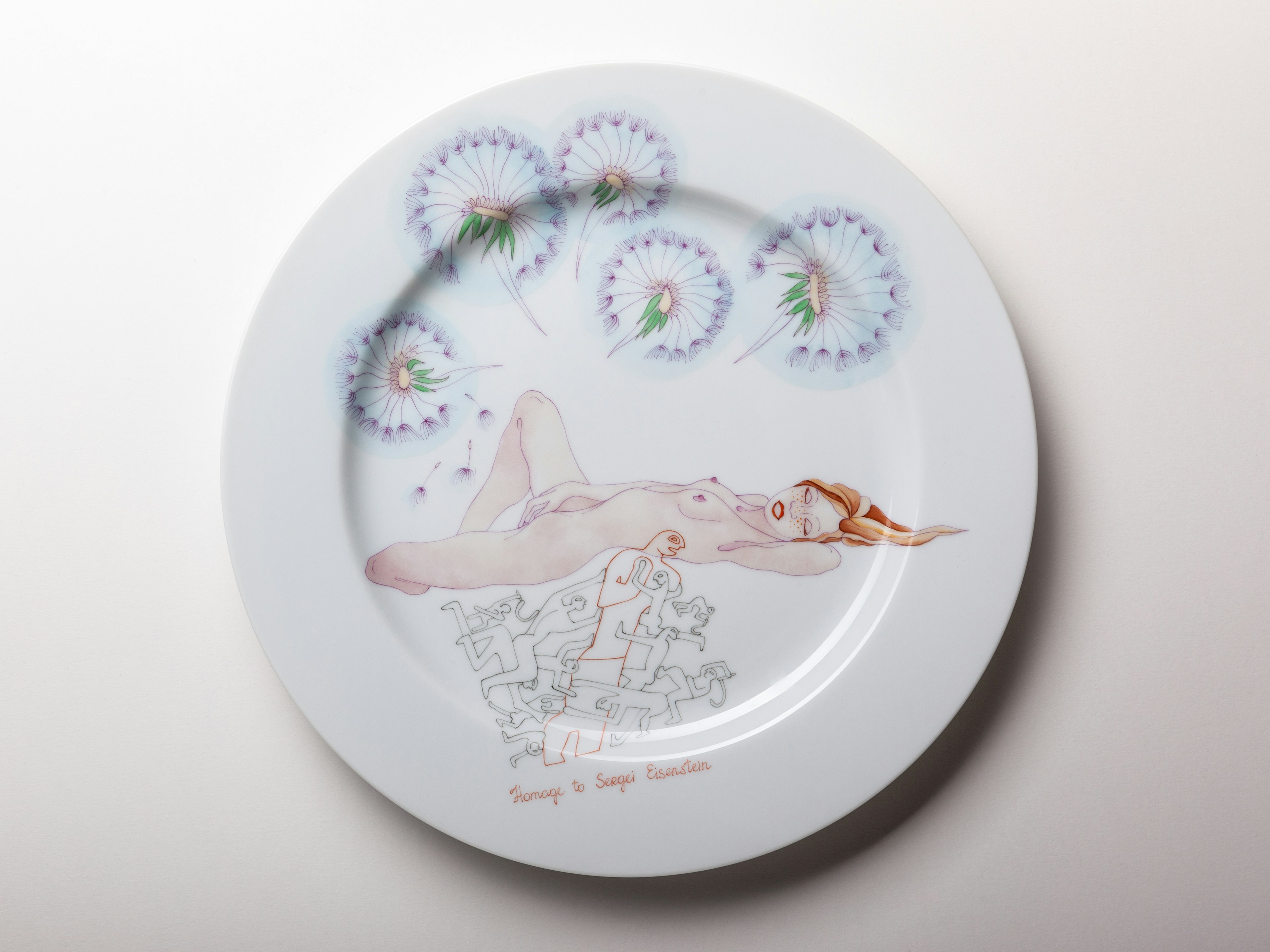 My set of “Society of clean plates” is my “This is not a pipe” peace of work. This is not me and not my body, this is not a body in general, but an image on porcelain. I made my set especially for dessert, because our sexuality is a dessert, it is a gift that makes our life much more pleasant and has a very important role not only in intimate life. It’s also a source of inspiration in art since the birth of humanity. Modern psychology constantly pays attention to the role of sexuality in personality development. If you deny your sexuality it will wake up a discomfort, frustrations and will lead to aggression. So, we have to express it and art is this safe zone, were we can blow it up or refine it, work it out and show it to the world. It’s always been this way, and I hoop its stays this way.